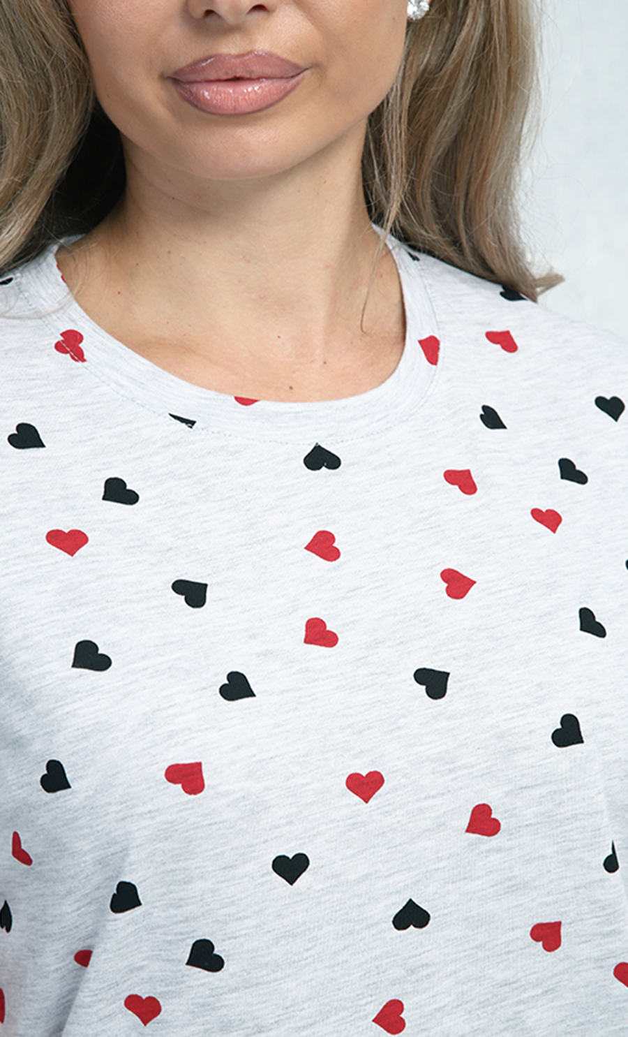 Цвет: светло-серый с принтом мелких красных и чёрных сердечек