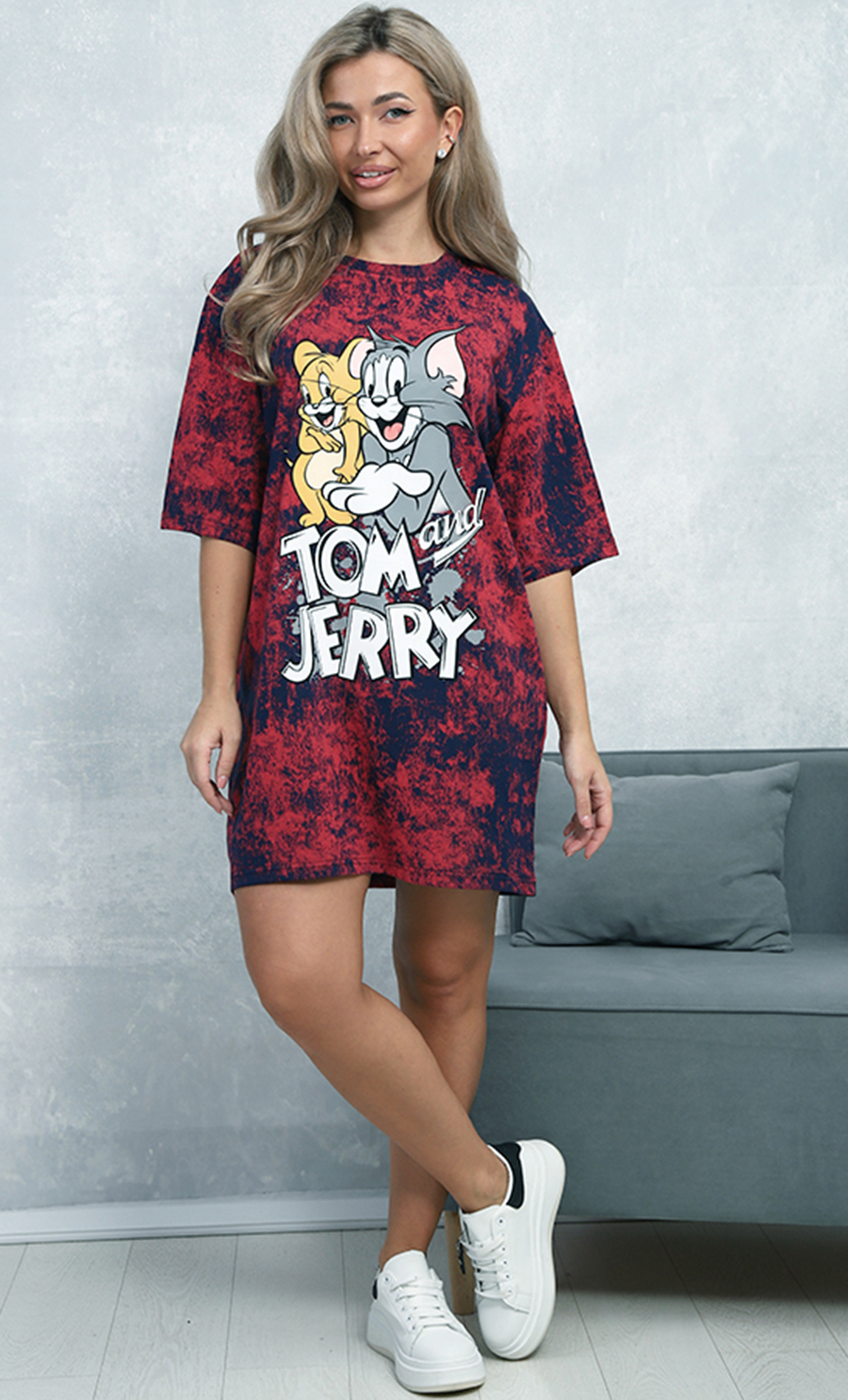Цвет: красно-синий с эффектом варёнки, яркий принт “Tom and Jerry”