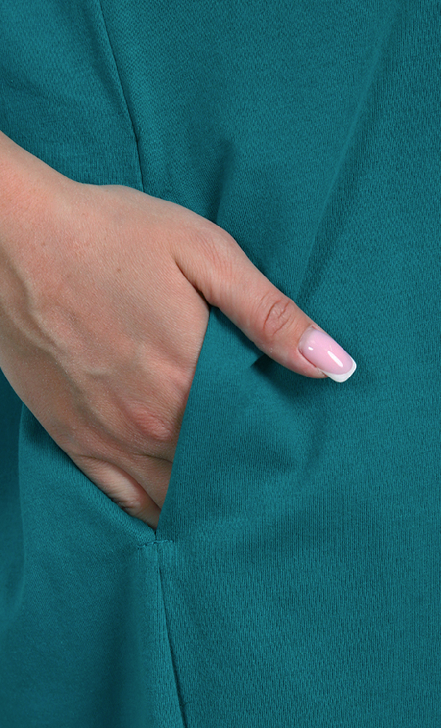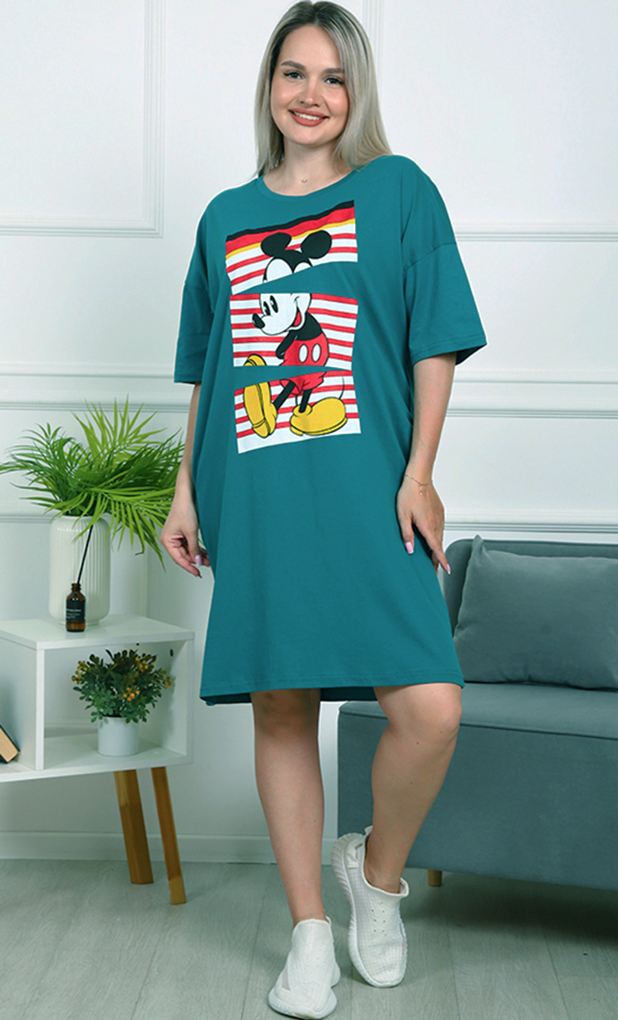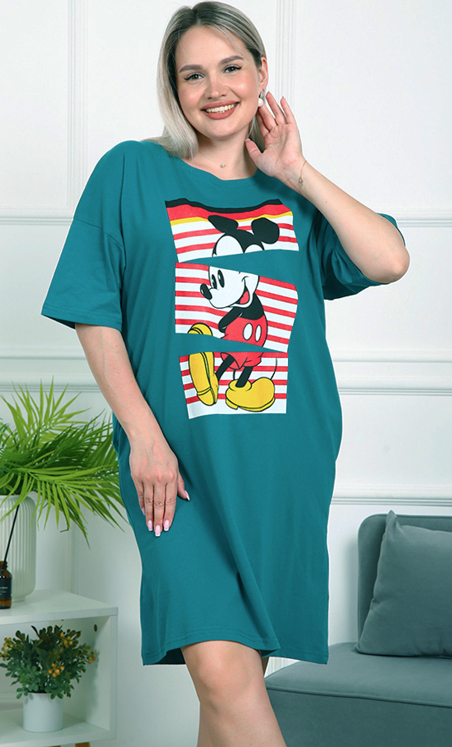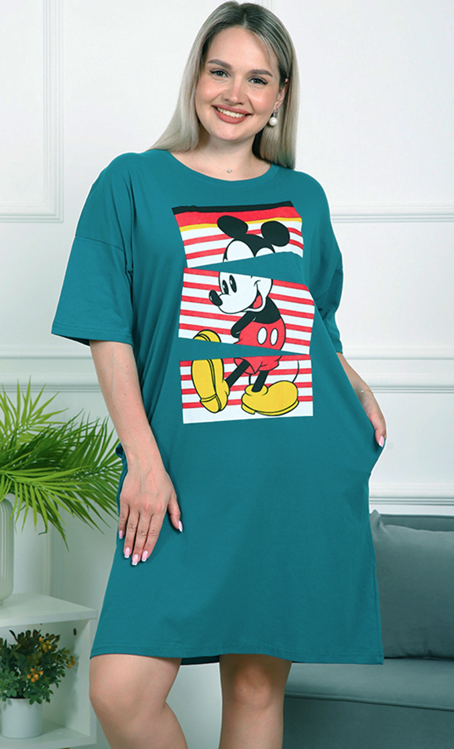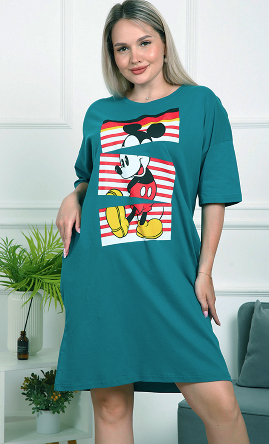 Это платье — идеальный выбор для тех, кто ценит комфорт и яркий стиль. Его свободный крой обеспечивает удобство и свободу движений, а насыщенный бирюзовый цвет добавляет свежести и энергии вашему образу.